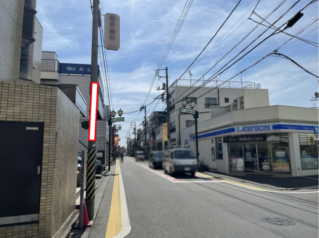 日大二高通り、杉並第九小南交差点脇に位置しております。周辺は住宅地で、杉並第九小学校や日本大学第二中学校・高等学校、区立阿佐ヶ谷図書館などの施設が多く立地し、特に日中の往来が多いエリアのため、誘導案内だけでなく認知度アップにもお勧めの柱です。
