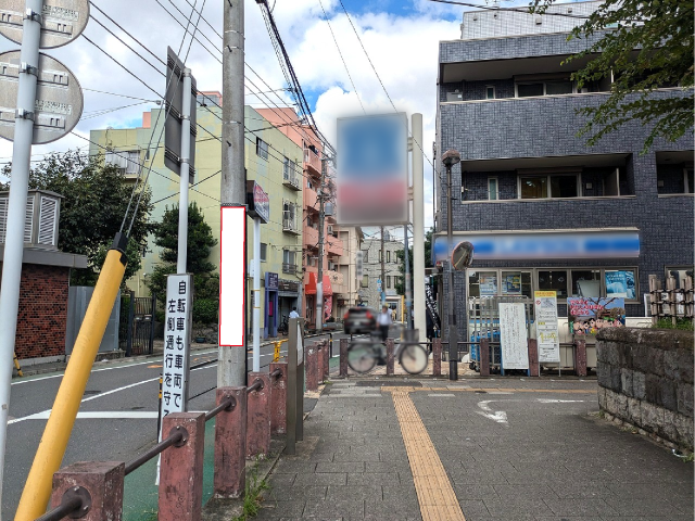 一里塚通り沿いの志村坂上駅A1出口とローソン志村坂上駅南店の間に立柱しております。