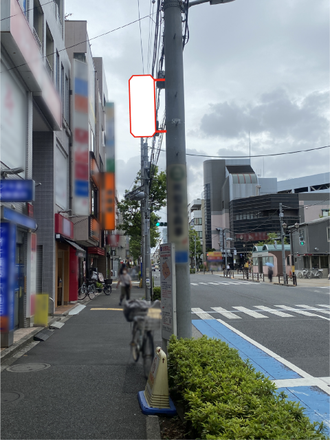 電柱近くのコンビニエンスストアや、ファストフード店を利用する多くの方々が往来されるため、おすすめでございます。