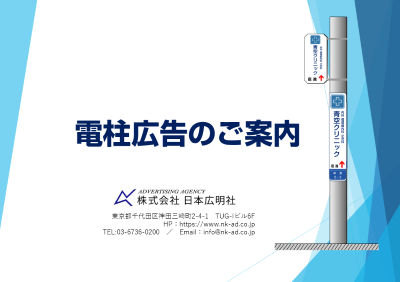 電柱広告や看板広告などの屋外広告、駅・電車の交通広告は日本広明社へ